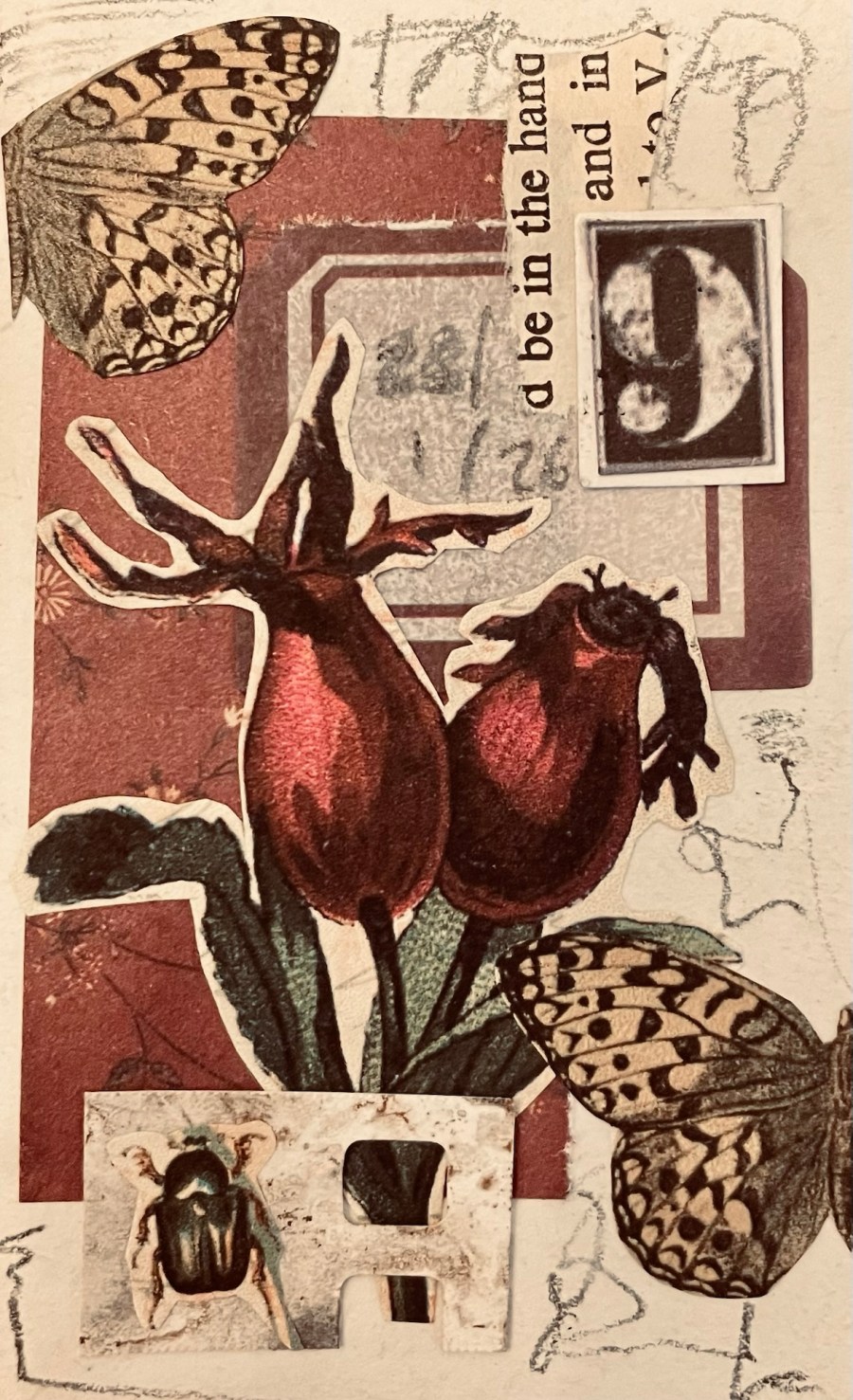 Miniature collages in a tiny sketchbook- creative rituals to help show up to your practice everyday