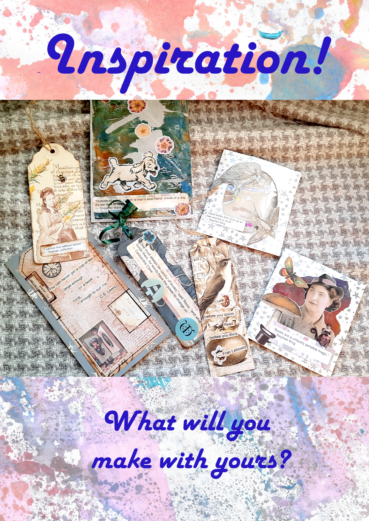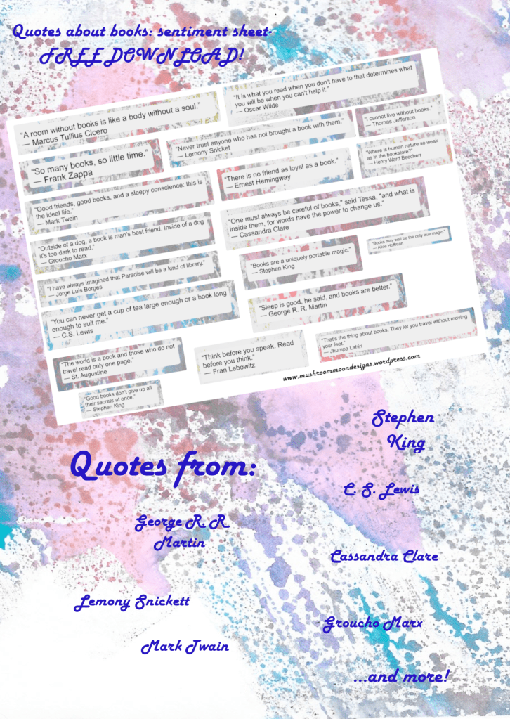 I collected a selection of famous quotes about books and used some of my Gelli print backgrounds to make individual decorated sentiments for you to cut out and use as embellishments.