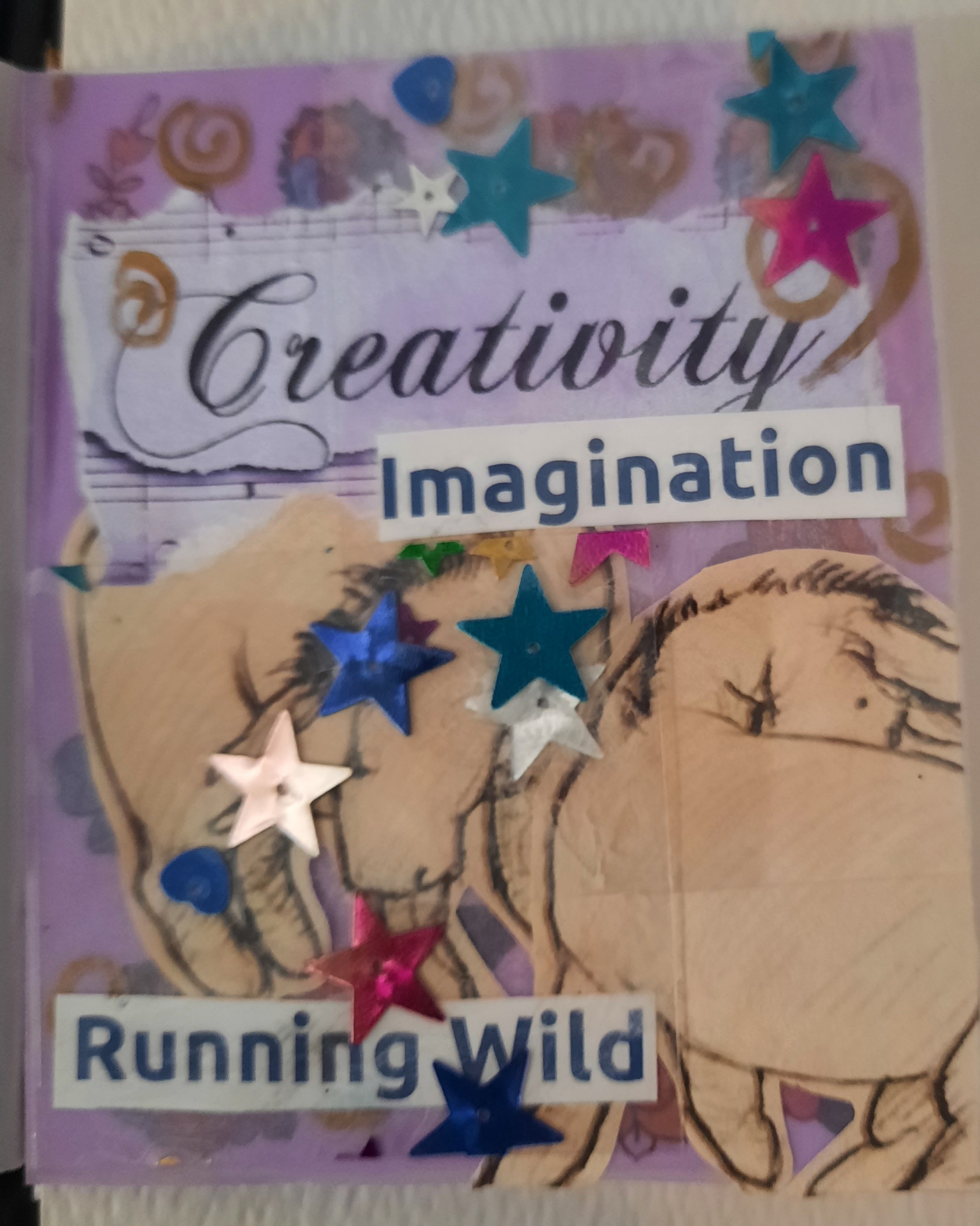 Today’s Mini journal page was inspired by the themes of creativity and imagination. I used layers of stickers, vellum, paper and laminate to make this miniature art journal page.