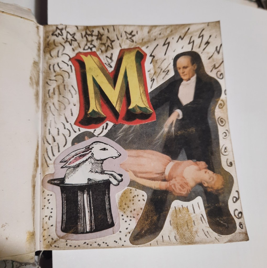 In today’s journal entry I have gone for a magician theme. I had my eye on using this awesome sticker of a magician for a while, I love this vintage image, especially the lightning bolts exuding from his finger tips.