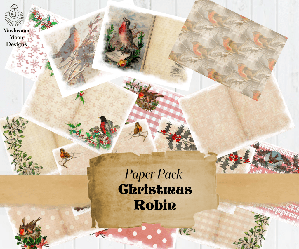 The Robin Christmas paper pack is perfect for creating your very own vintage-style Christmas journal but the papers can also be used to create ephemera for your scrapbooking, junk journal, card making and other arts and crafts projects.