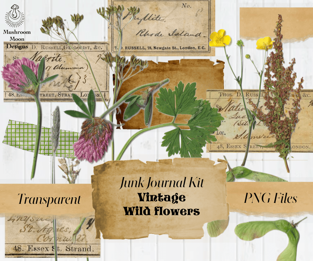 The transparent PNG files are particularly useful if you like to make or embellish your own digital designs and ephemera- these images of real wildflowers have a see-through background so they can be layered seamlessly on top of other digital images, meaning you can add them to other digital kits you own or create your very own digital ephemera.