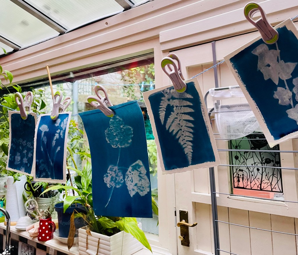 I am inspired to create with natural items and in the Autumn there is no shortage of inspiration. I have been collecting interesting plants, leaves and various natural items on my walks and have turned my hand to creating some cyanotypes for the first time!