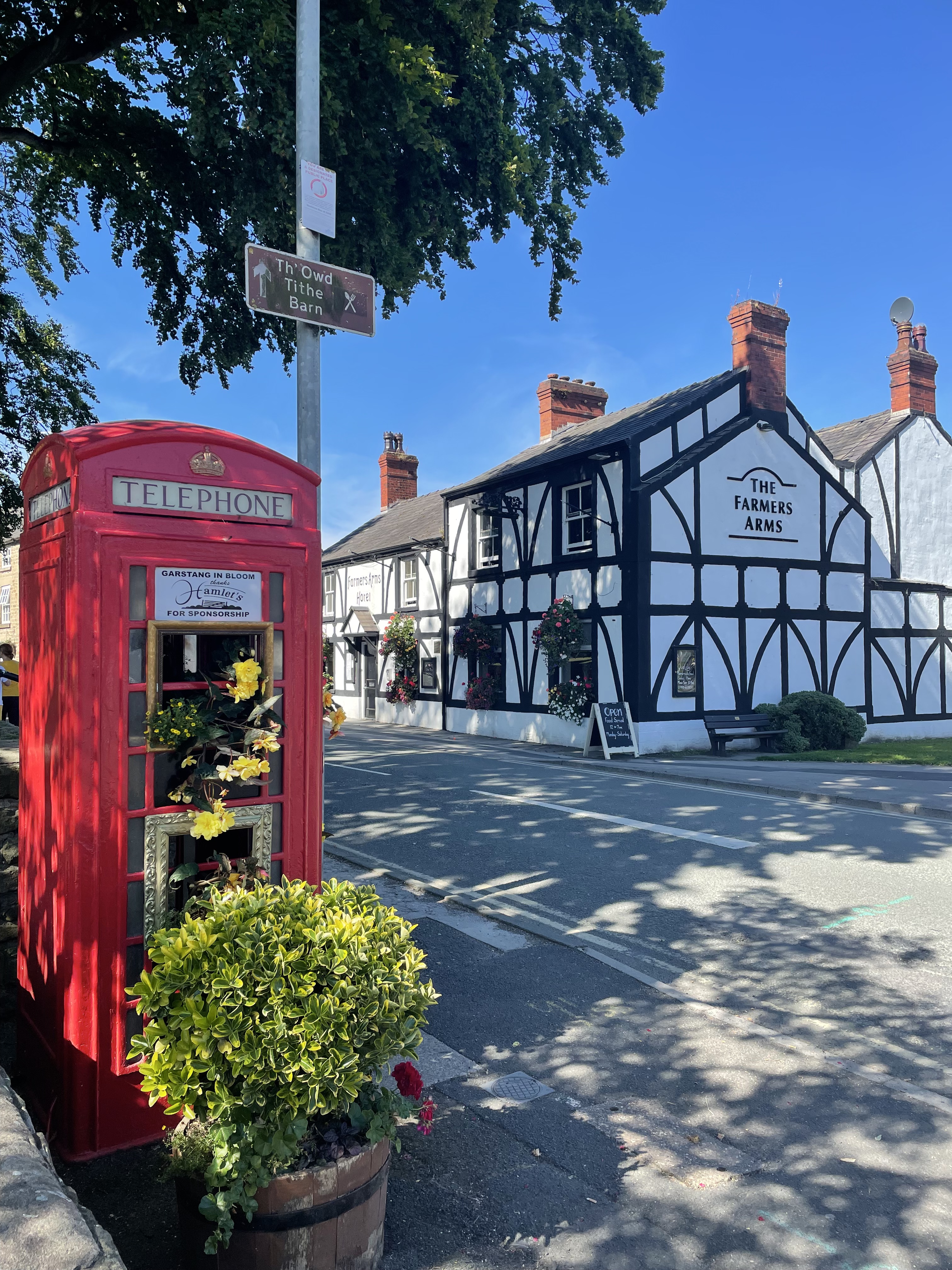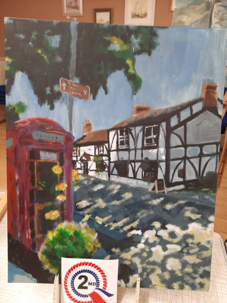 I painted the Farmers Arms Hotel, a beautiful black and white building covered in vibrant hanging baskets. It is situated across the road from a lovely old red phone box and I managed to get both the phone box and building in my painting.