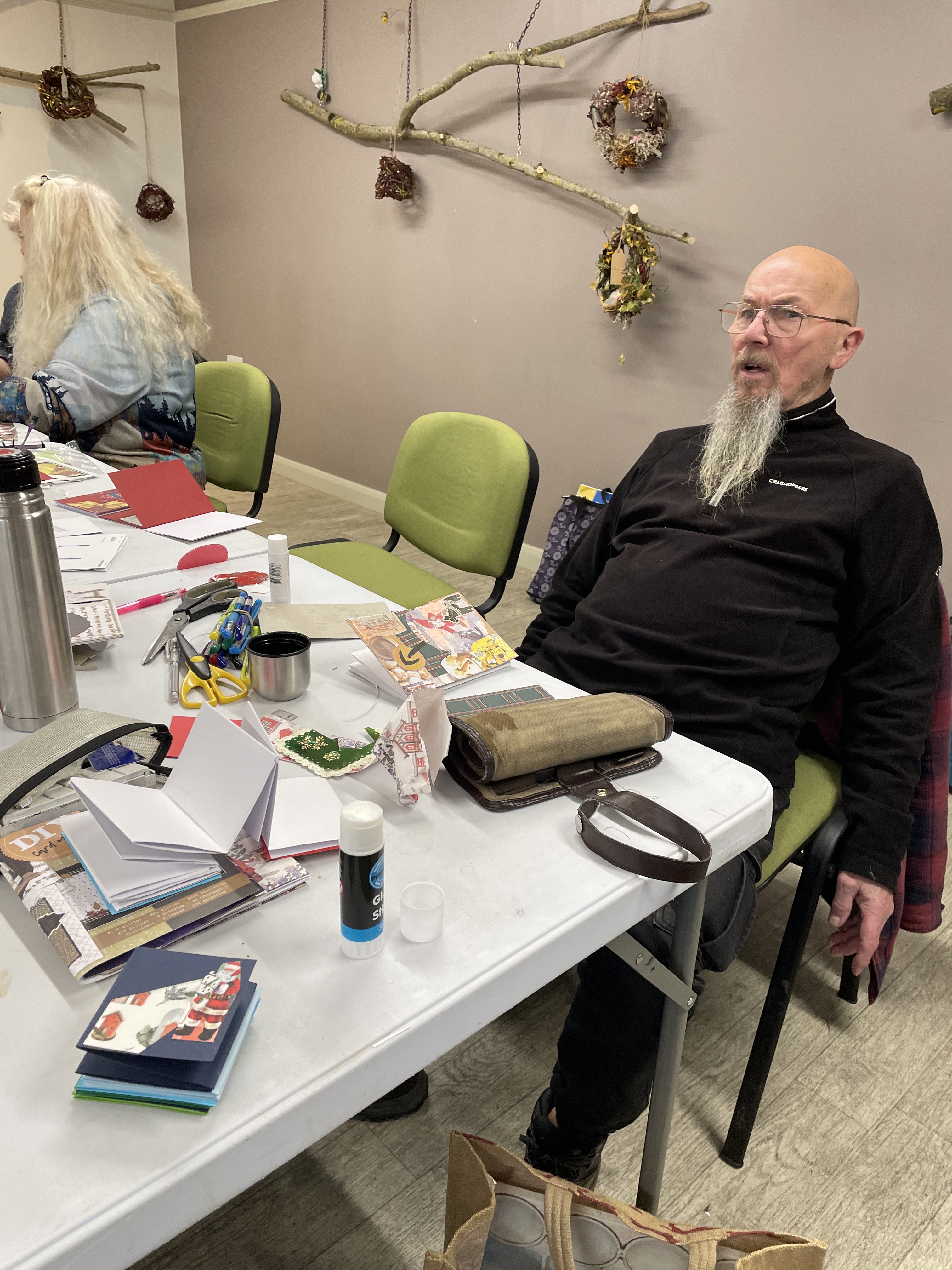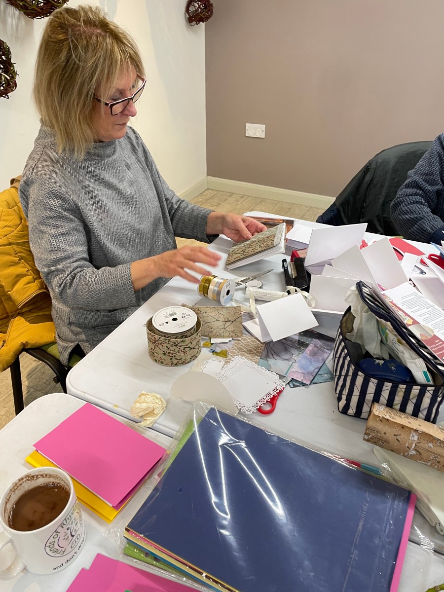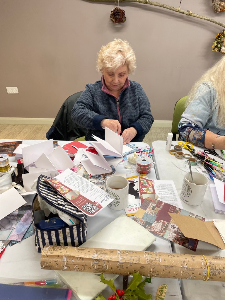 In today’s workshop, I showed the Blackburn Artists how to make three different sketchbooks using only one sheet of paper in each. We made the pages of the books using different paper folding techniques and then spent many happy hours decorating our sketchbooks with Christmas-themed designs and artwork. If you would like to try out making your own sketchbook, why not check out these videos I made explaining the process!