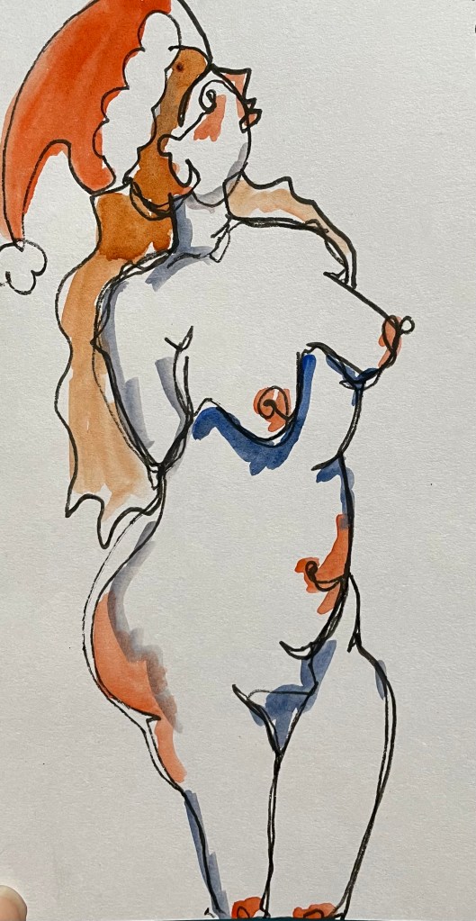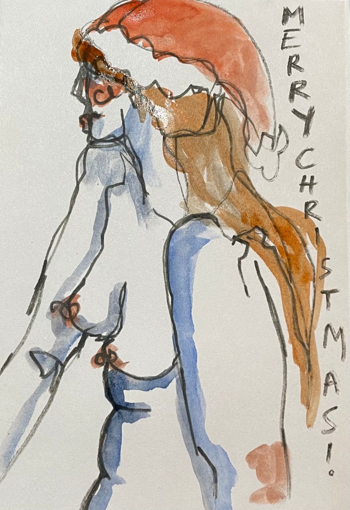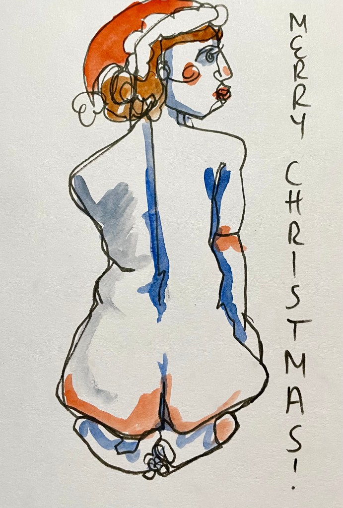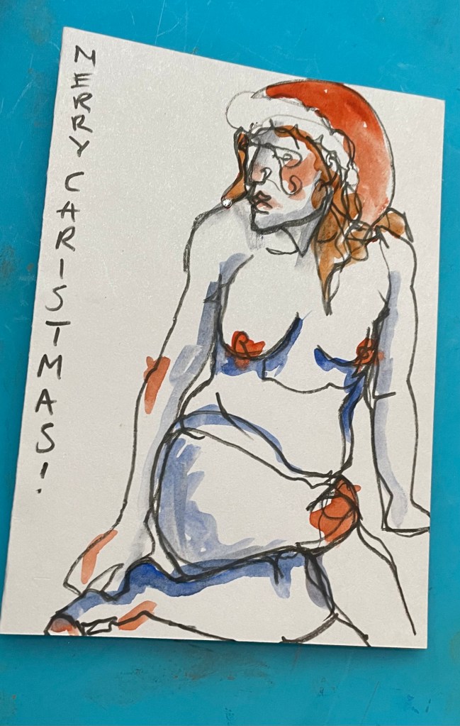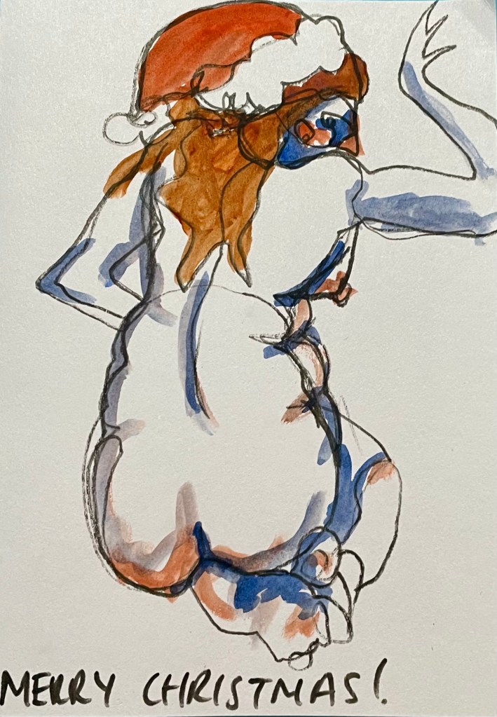 Thank you to all who followed along with me on my art journey this year, whether that be reading a blog post, following me on Instagram, visiting one of my exhibitions or purchasing an art work- in whatever way you’ve interacted and inspired me this year thanks so much, I really appreciate it. I will leave you with these pictures of Christmas cards I made this year for some of my life drawing and artist friends, have a great Christmas and see you again soon!