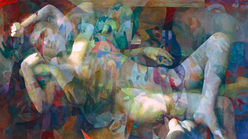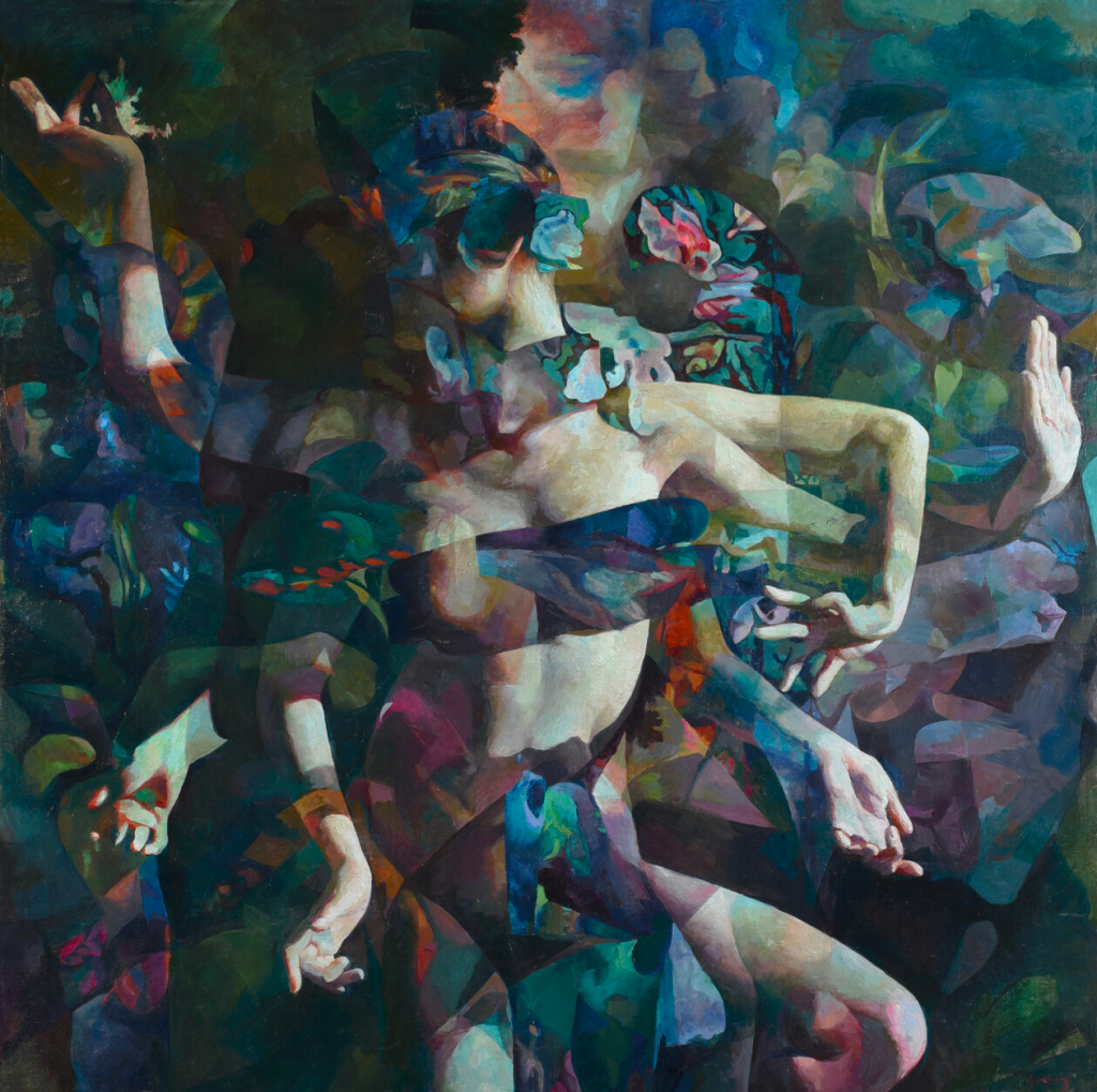 I am inspired by the artist Daniel Ludwig who creates fantastic paintings of figures using a range of different media. The paintings he creates are a mixture of classical artworks and abstract forms that are filled with shape and colour. He creates beautiful paintings where many figures or poses are combined into one image that makes sense- such as in the images below: