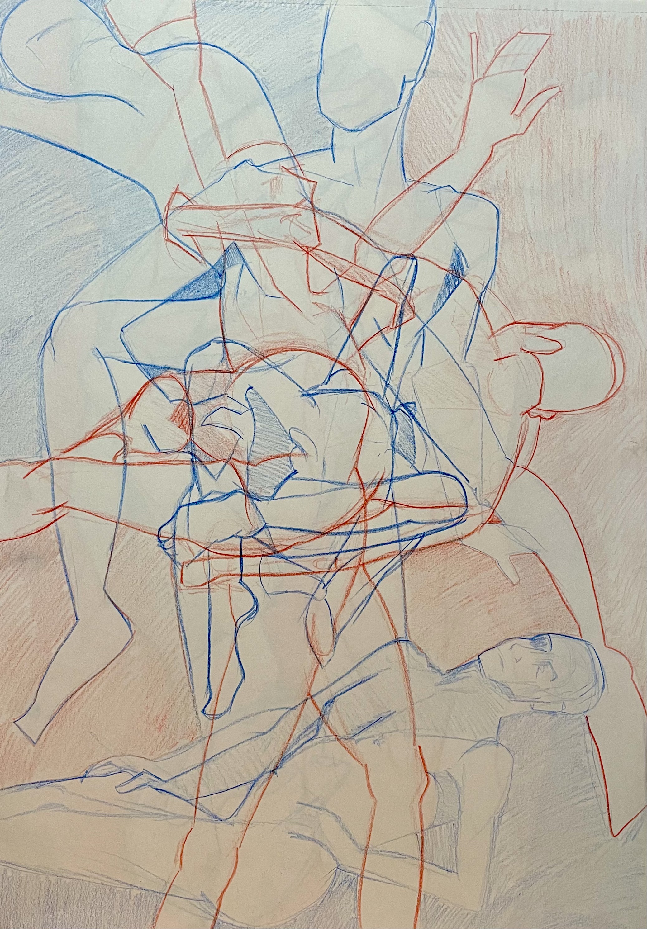 The choice of Red and blue was not for any special reason, I just have a selection of pencils that have red on one end and blue on the other end – these are great when doing shorter poses as you don’t have to mess around finding different coloured pencils!
