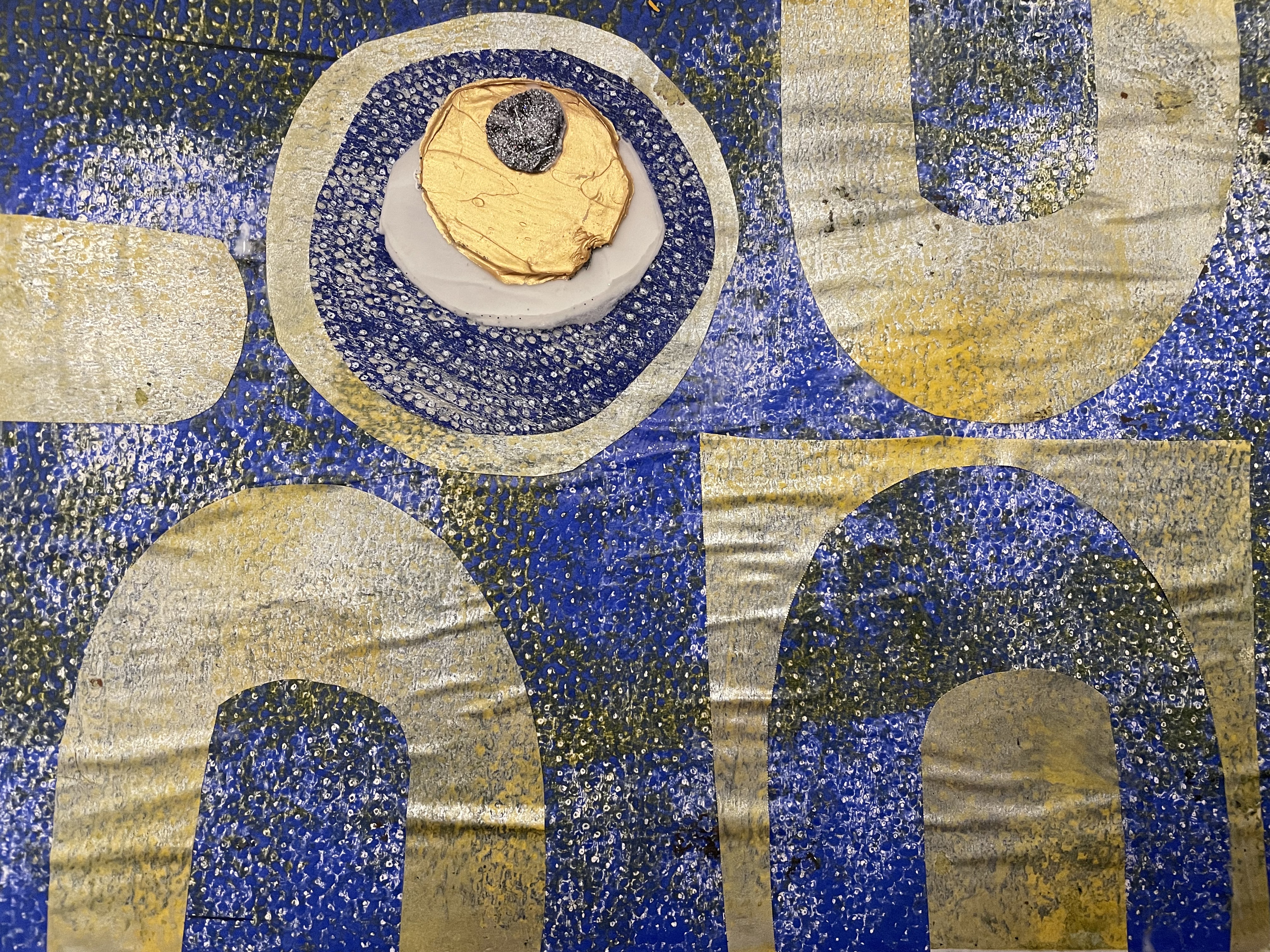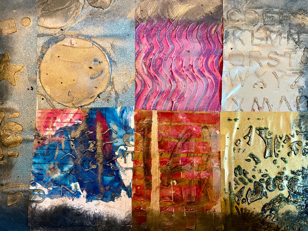 On day 25 the theme was String Symphony. We incorporated different thicknesses of string into our collages, adding depth, movement, and tactile quality to our artwork. I experimented with layering and combining string textures with other Gelli printing techniques to achieve my collage papers.
