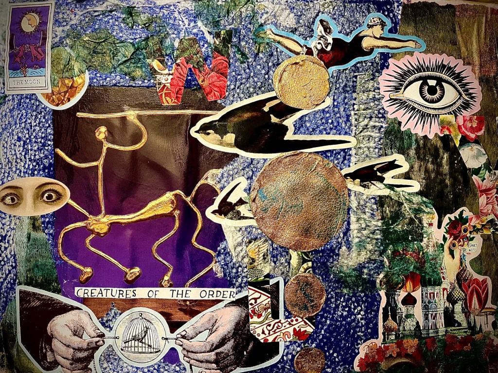 It’s week 5 of the 100 days of collage course! ( You can find it HERE). We have been exploring real and imagined worlds! This week was fun to try something different and explore adding narrative to our collages.