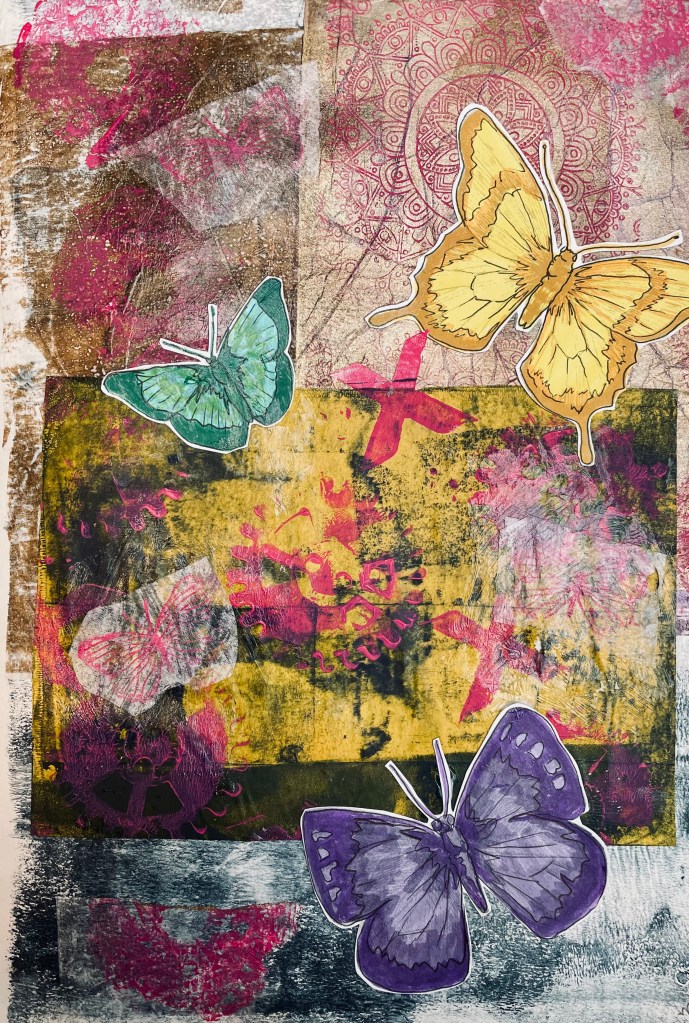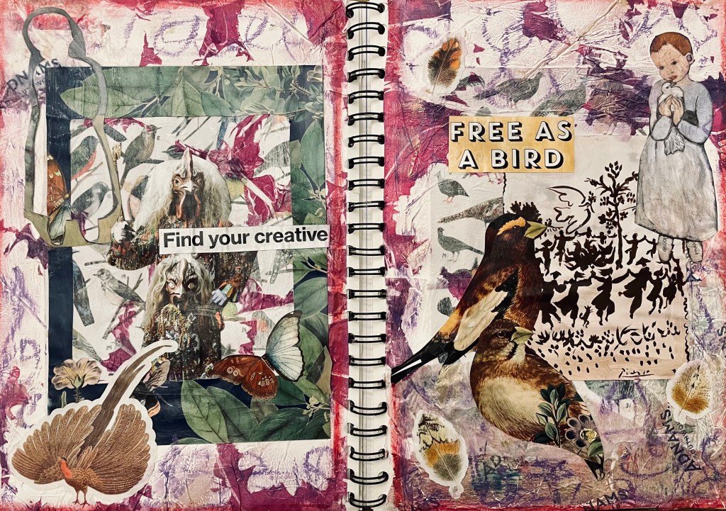 In this class we were encouraged to Incorporate bird imagery into our collage. Birds are often used to symbolise freedom, hope, and creativity.