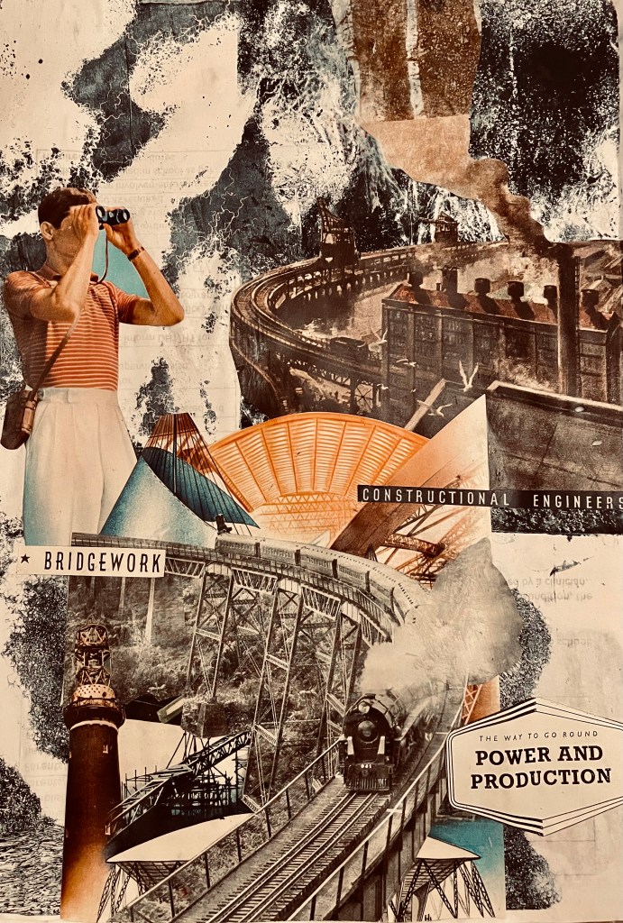 I was inspired by the train and bridgework imagery in a vintage magazine I had in my stash.