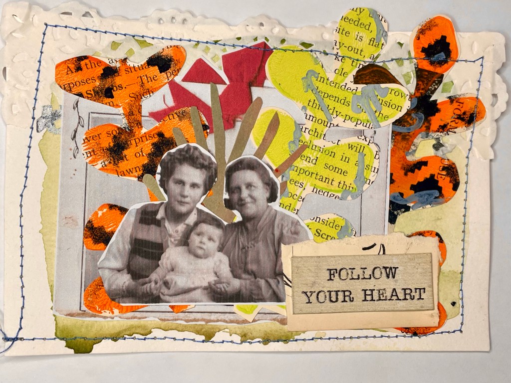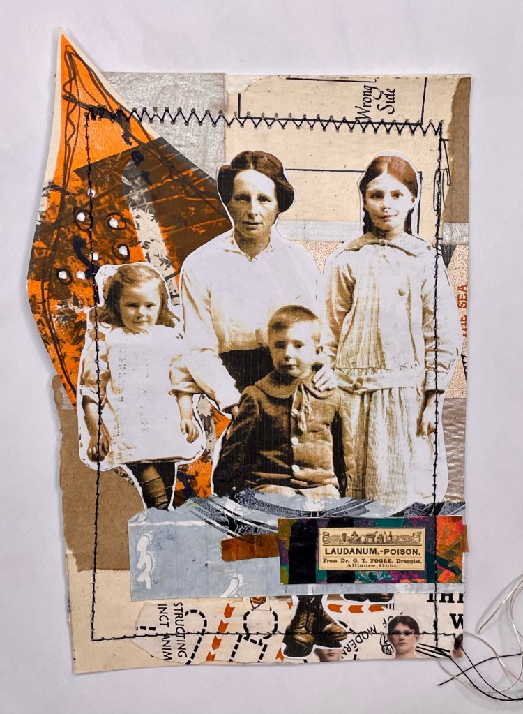 Throughout this post you can see the pieces I made during the course. Many feature personal family photographs, which made the process deeply meaningful for me. There’s something quite special about breathing new life into old images through collage.