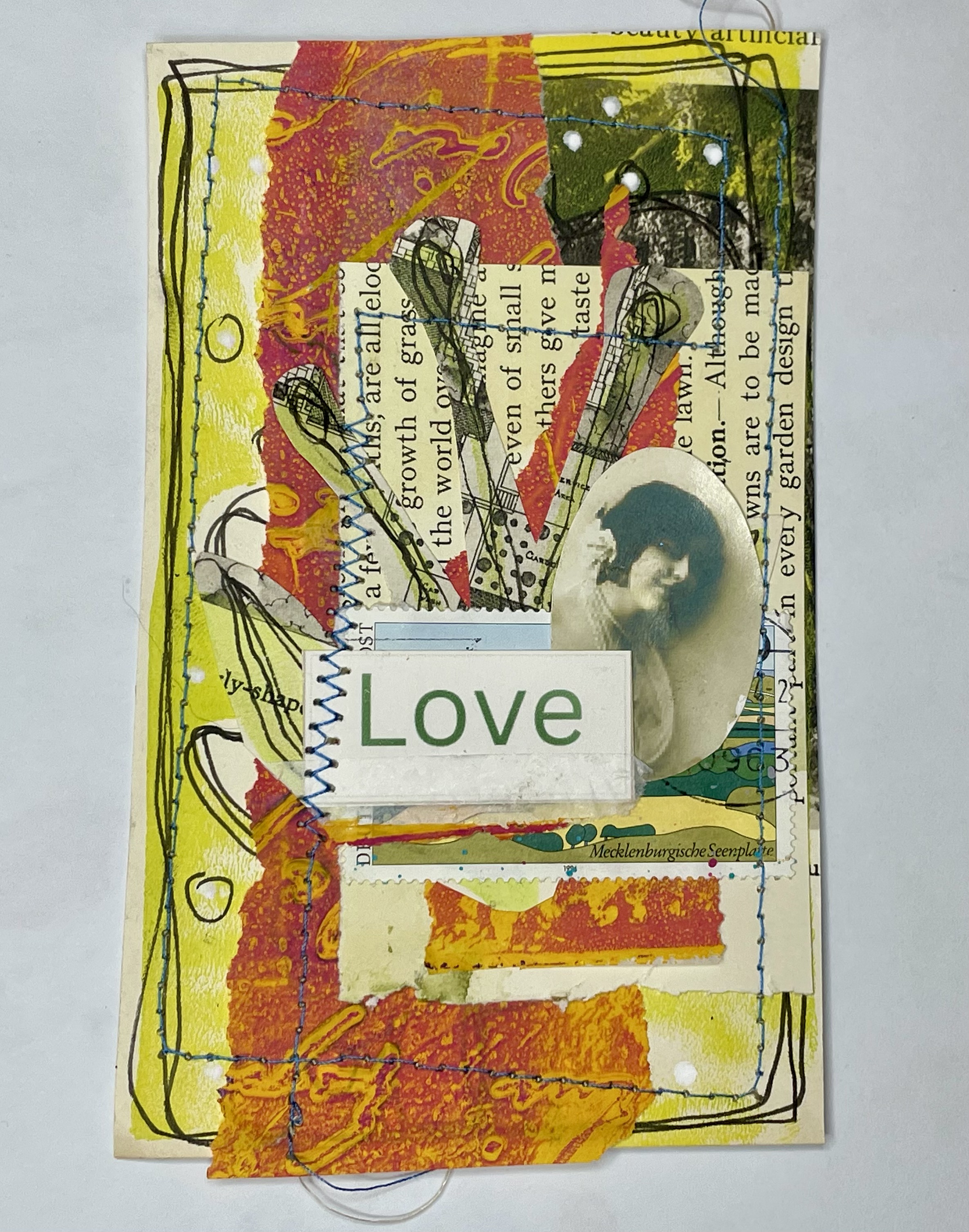 In mixed media circles, fodder refers to all the bits and pieces we use to build our artworks. This includes painted papers, vintage ephemera, fabric scraps, stamped images, doodles, photos… anything goes. Think of it as the fuel for your creative fire.