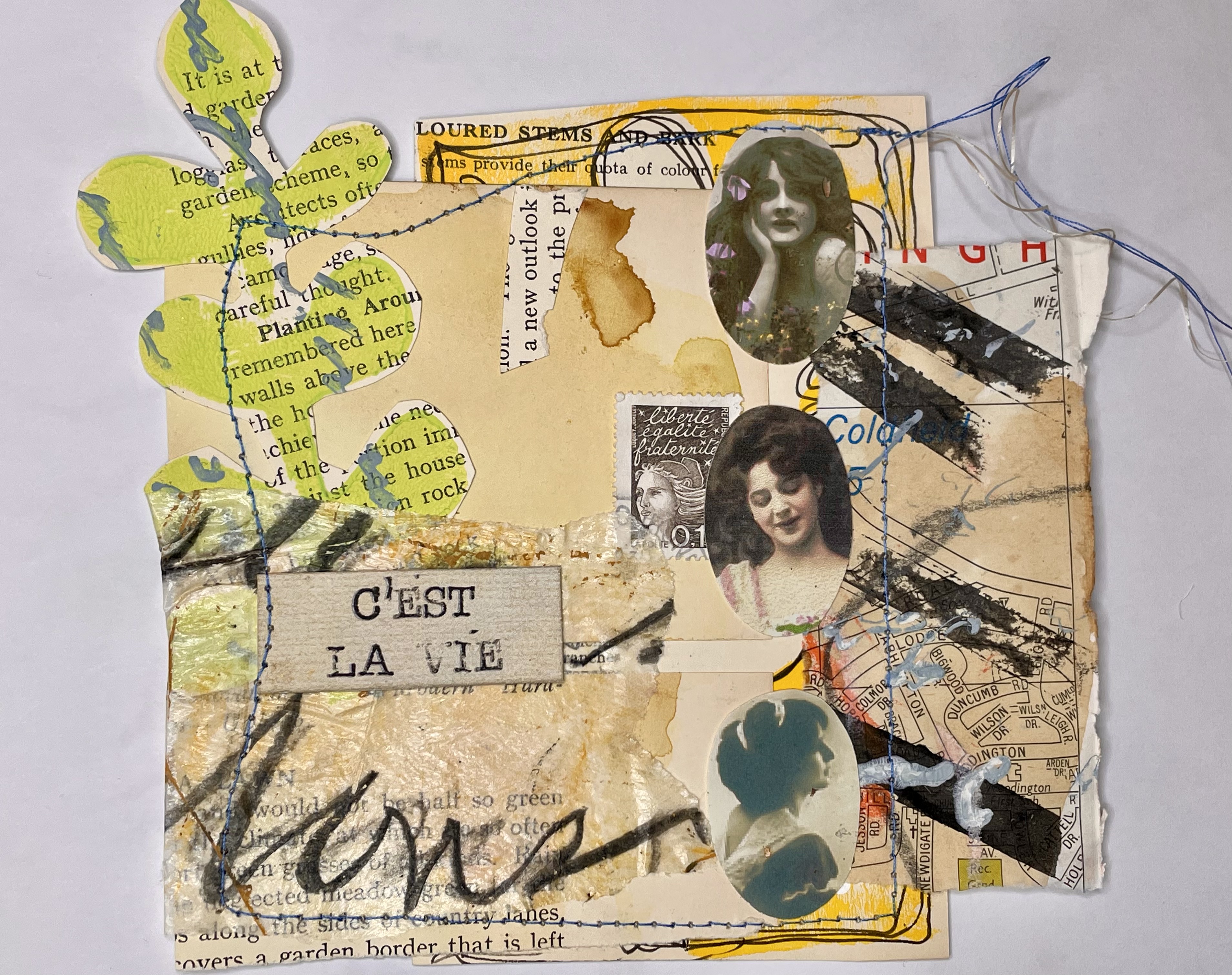 I’m really enjoying using a wide range of creative practices. Although I am passionate about painting and fine art I also really love craft. Playing with paper allows me to use found objects and vintage papers which I’m fascinated by. It also allows me to be messy, to let my intuition lead and to make mistakes. I’ll be sharing more about my Fodder School journey (and other creative experiments) over the next few months, so stay tuned!