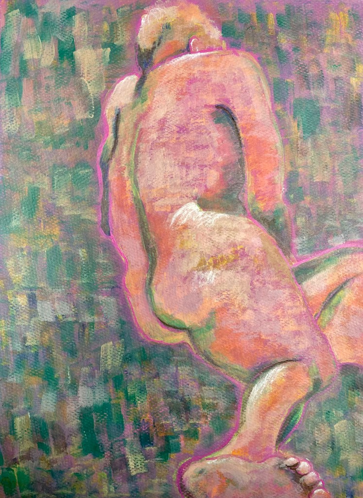 I have been strongly influenced by several factors this year. The first one being my exploration into post impressionism and fauvism- particularly my interest in Cezanne, Paul Gauguin and Van Gogh. Secondly I have been inspired by attending groups and making connections with fellow artists. I have been attending life drawing sessions with live models at Blackburn Life Drawing and Hush both of which attract very talented artists and I have learned a lot from attending these sessions.