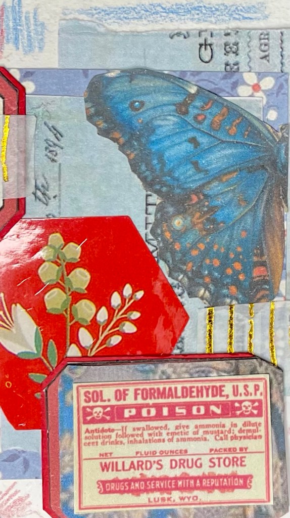 Some of the collages start with a colour theme, others seem to begin from a symbol or an image. It’s been a great exercise so far in turning up to my creative practice everyday, creating for the act of creating itself not for outcome and as a way to see what images, colours, symbols and ideas I am intuitively drawn to. It’s also been a brilliant way to use up tiny interesting scraps of paper and ephemera.