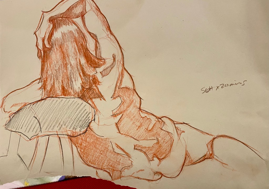 Here is a selection of my recent life drawings! Recently I have enjoyed practicing drawing faces and trying to get a likeness from life rather than from reference photographs. This is pretty challenging and has various degrees of success! But I am enjoying the process. I have also experimented with using Conte Crayons, a medium I am unfamiliar with but am enjoying experimenting.