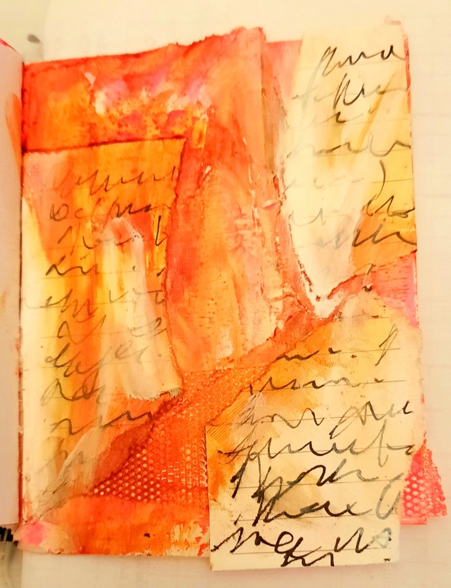 In today's journal entry I went for some of my favourite colour acrylic paints, fluorescent pink and Nickel Azo Gold (both by the company Golden) again but took a different approach to yesterday's page by muting the colours with white gesso. I did not really have a theme. I made this image by layering different …
