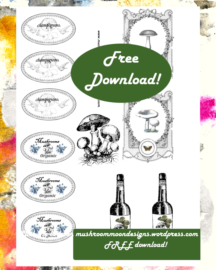This weeks Mushroom Moon Designs Freebie is this lovely Mushroom ephemera sheet! Click on the download link to get your free instant download! mushroom-freebie-may-2ndDownload This Instant Free Download contains one A4 size printable sheet of Mushroom themed ephemera, including 3 French style Champignon vintage labels, 3 Organic mushroom vintage labels, two mushroom bottle images, a …